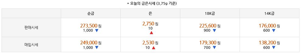 요즘은 1g기준 시세와 한돈 기준 시세로 나뉘어서 나오고 있습니다.
