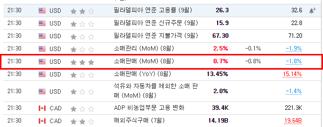 미국의 상무부에서 발표된 8월 소매판매가 전월 보다 0.7% 증가하며 시장 예상치인 -0.8%를 상회하는 결과로
