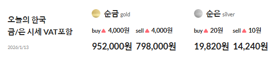 | 정확한 국내 금1돈 금시세 골드바 100g 1kg 가격 확인 (0) | 2026.01.08 |