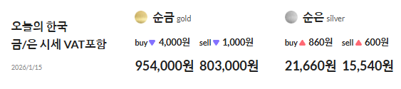 | 정확한 국내 금1돈 금시세 골드바 100g 1kg 가격 확인 (0) | 2026.01.08 |
