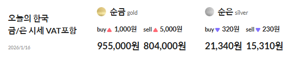 오늘은 2026년 1월 16일 금시세를 확인하고,