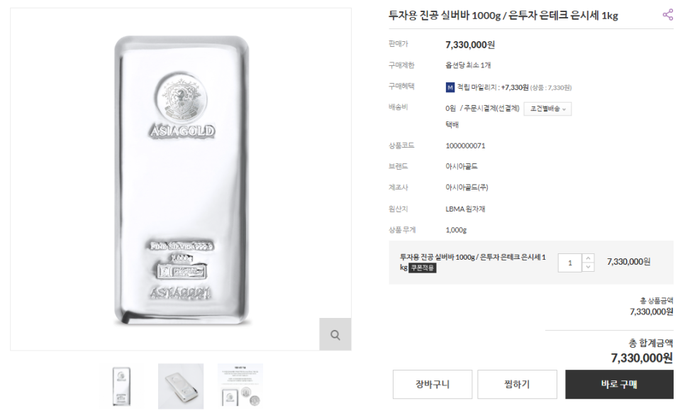 "실버바 1kg에 733만 원, 혹시 거품은 아닐까요?"라고 생각 할 수 있습니다